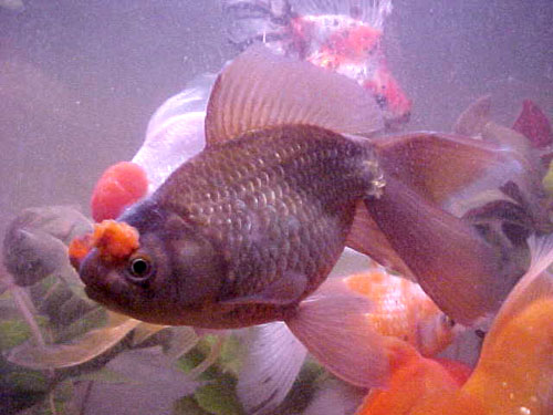 Existujú rôzne formy závojnatiek,pompon-ryukin napr.,ktorému až zhruba v 3-5 roku života začnú "klíčiť" okolo úst,nosnýc otvorov a na čele karfiolu podobné výrastky,rôzne formy orandy,korým tiež začnú vyrastať zdureniny až v neskoršom veku,nie hned odmalička,pokial toneboli ryby kupované priamo od chovatela-špecialistu,môžu byť všelijako vzájomne pokrížené,môže sa ale aj jednať o nejaké plesňové ochorenie ako už bolo spomenuté,to sa naslepo z nejakou určitosťou povedať bohužial nedá.Pokial je to 5 a viacročná ryba,a doteraz nič nemala,tak by to mohla byť nejaká pleseň,ktorá by sa dala obvykle vyliečiť spomínaným chloramphenycolom,tetracyklínom alebo nejakým iným dostupným liečivom pre ryby,niekey stačí aj kuchynská sol,len bohužial,zatial stále strielame naslepo.