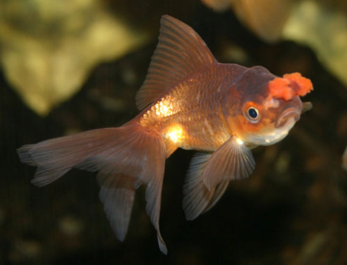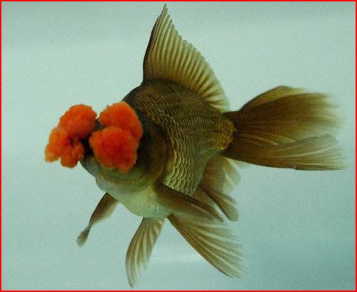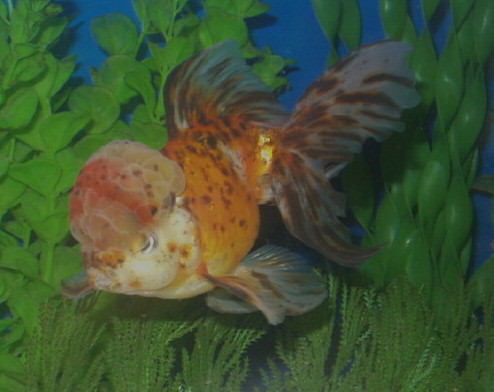 zrejme sa jedná o hybrid "levia hlava" alebo "oranda"-[oranda má v mladosti len červený flak na čele… nový