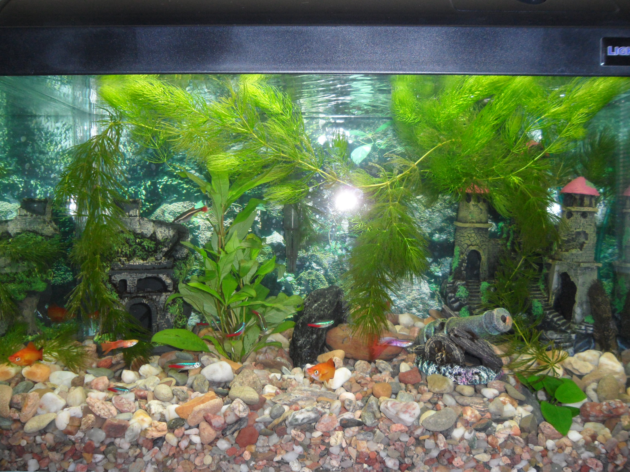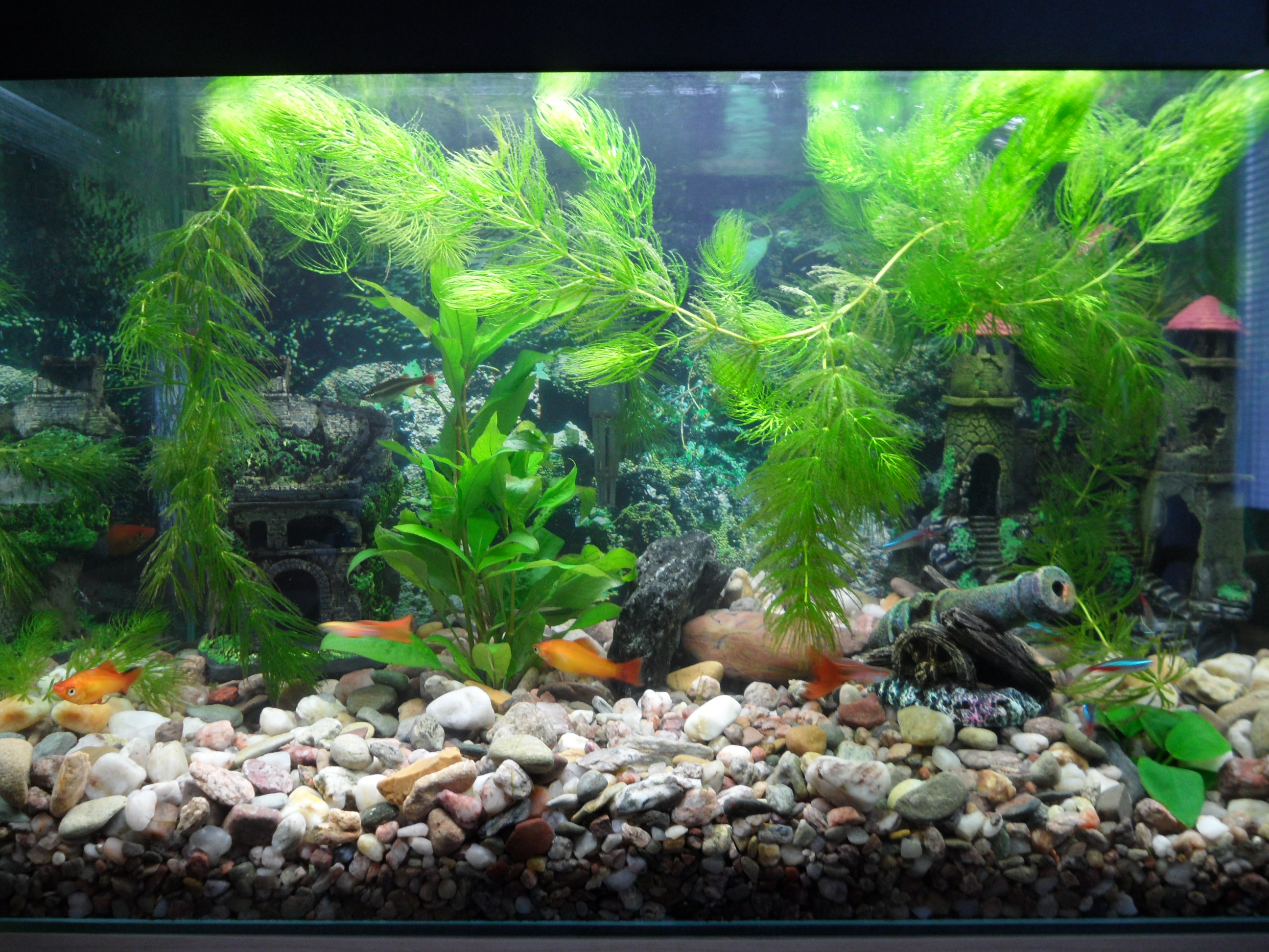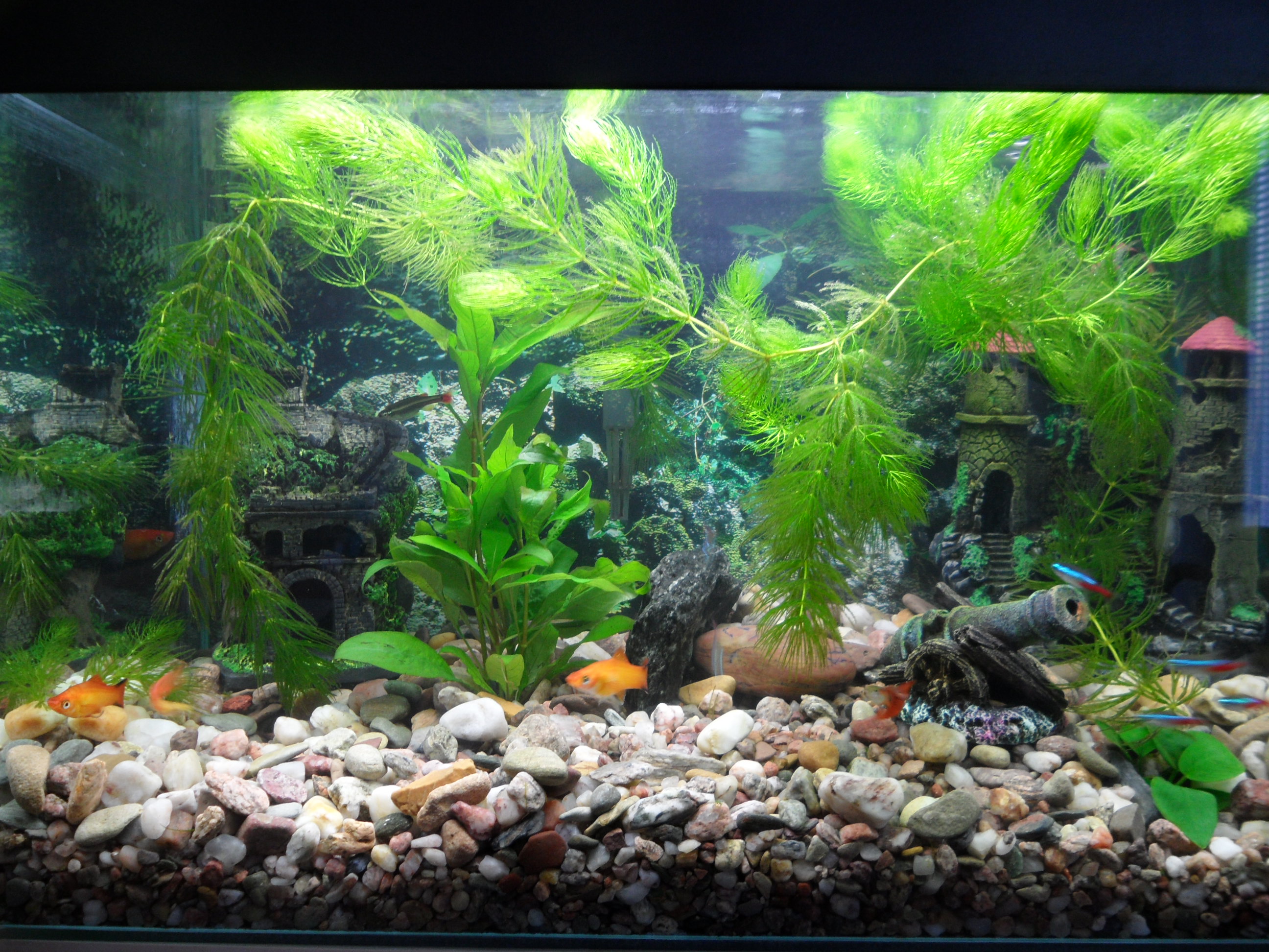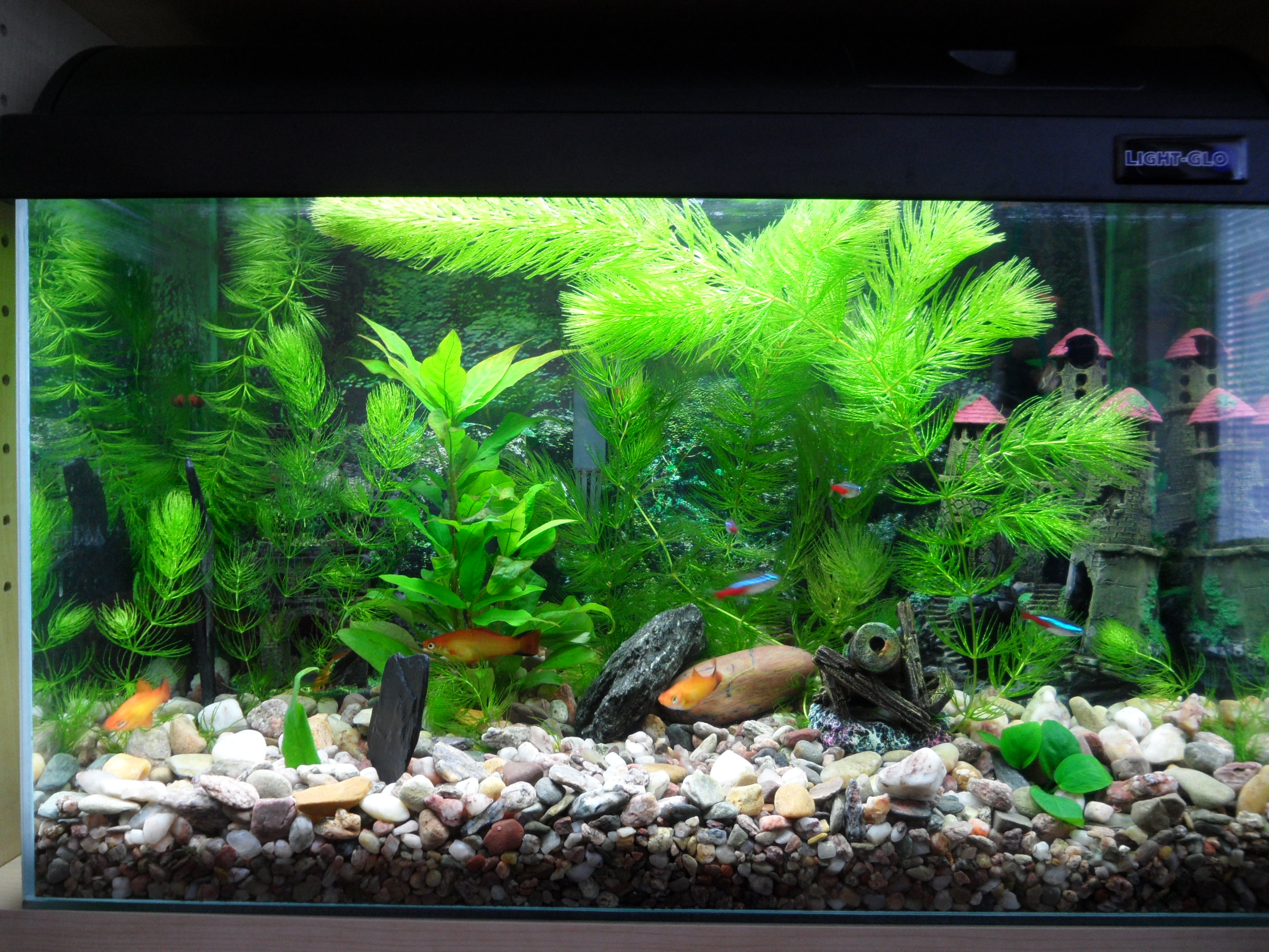 Každopádně nepřekrmovat, aby nebyl zbytečně bordel na dně a ve vodě. A když bude nejhůř, vykašlat se na kytky a koupit hezký a kvalitní umělý. Není to sice košer, ale dá se - když člověk dobře vybere.