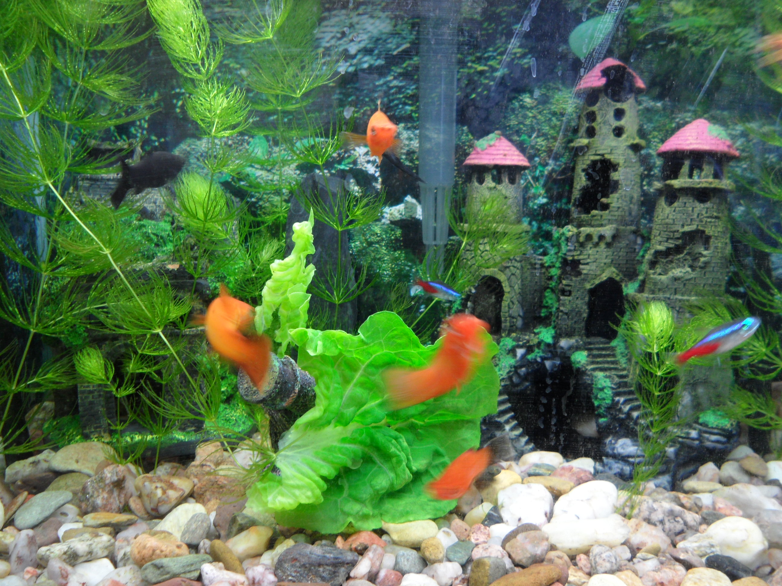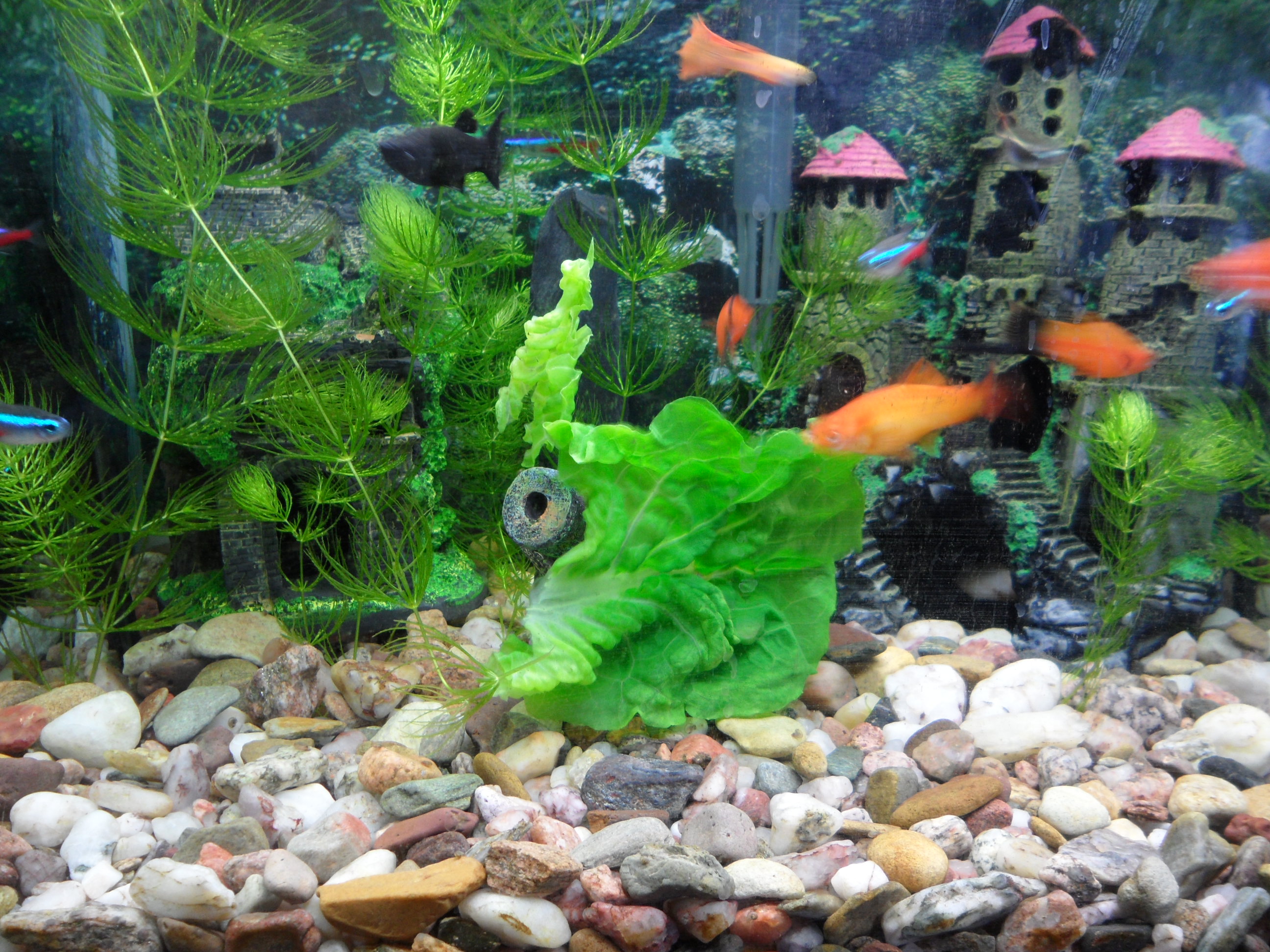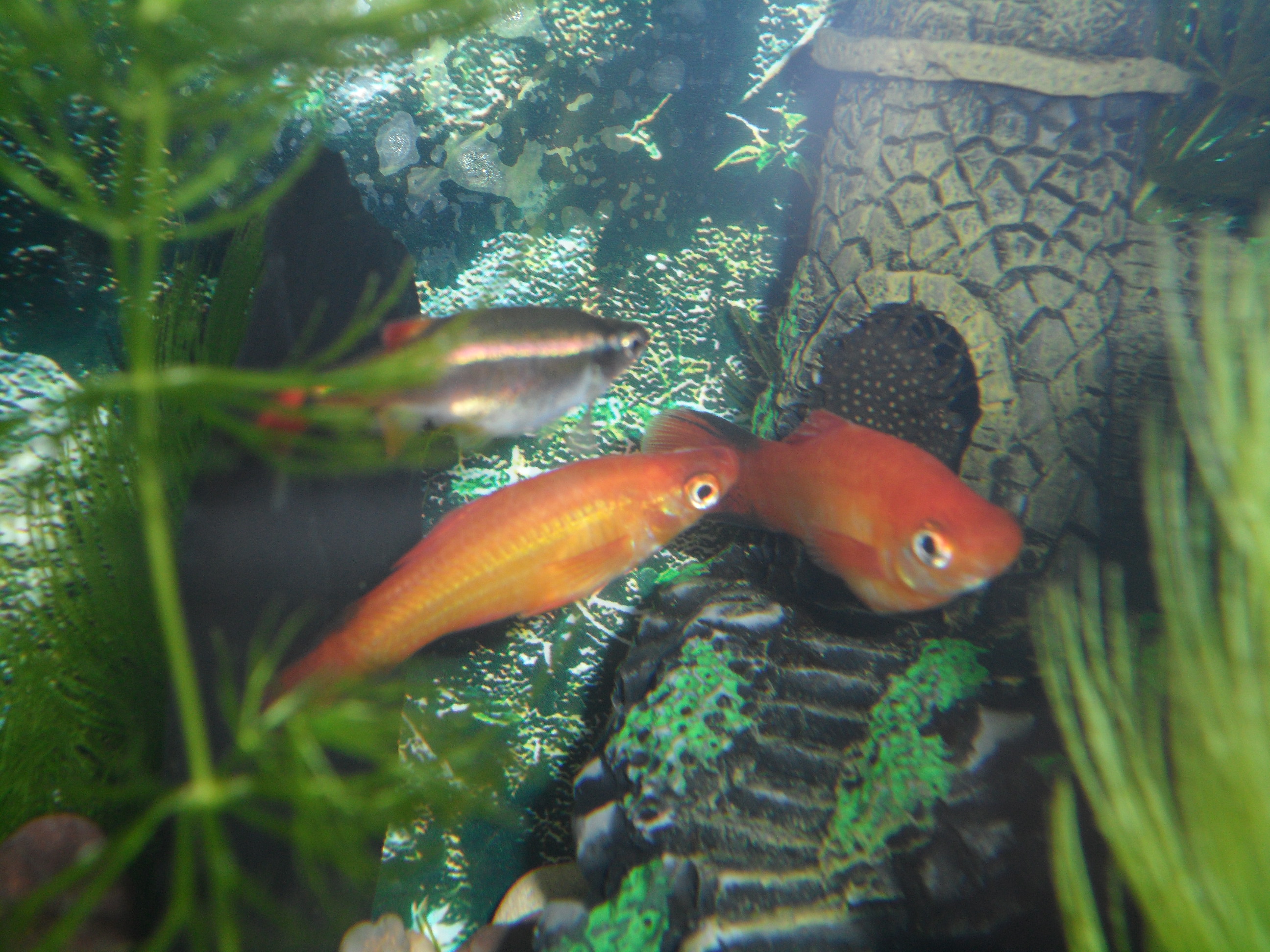 Už se zkamošily,zrovna se cpou.Takovej lupen by měly dostat jak často,třikrát týdně?...Akvárko má 40l.Molly je sama,chtěl jsem pár,ale nebyl.Každopádně jí ho dodám a už končím,ryb je tam dost.