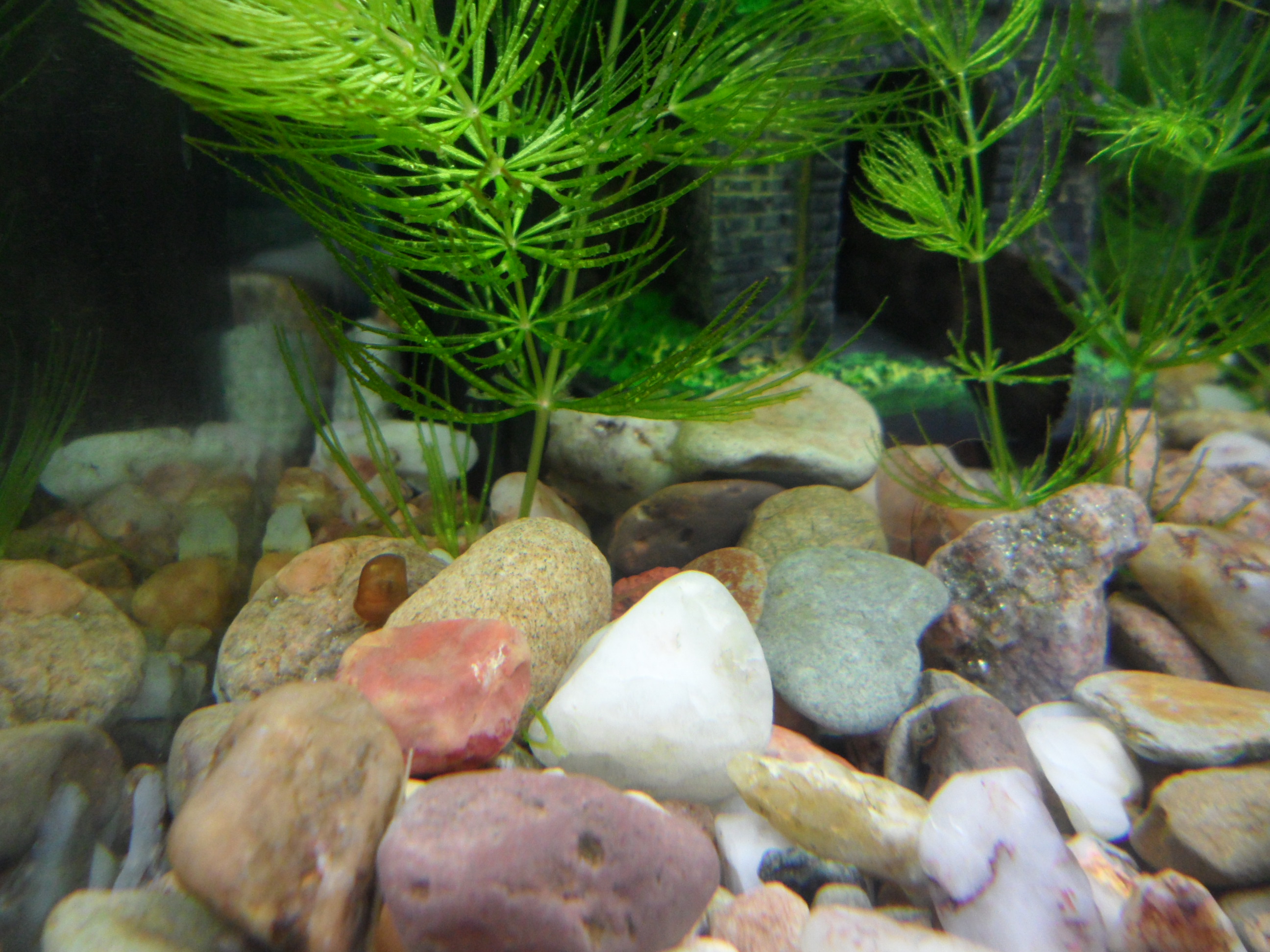 No, my v akvárku s mečovkama, mollama, schubertkama a ostatníma už dáááávno nemáme jedinýho šneka. Ony totiž nejenže žraly vajíčka, ale taky šneky samotný... a betta je super na spásání šnečích vajec... problém je, že teď se tam rozlejzá řasa... tak jako normálka, no, akvárko...