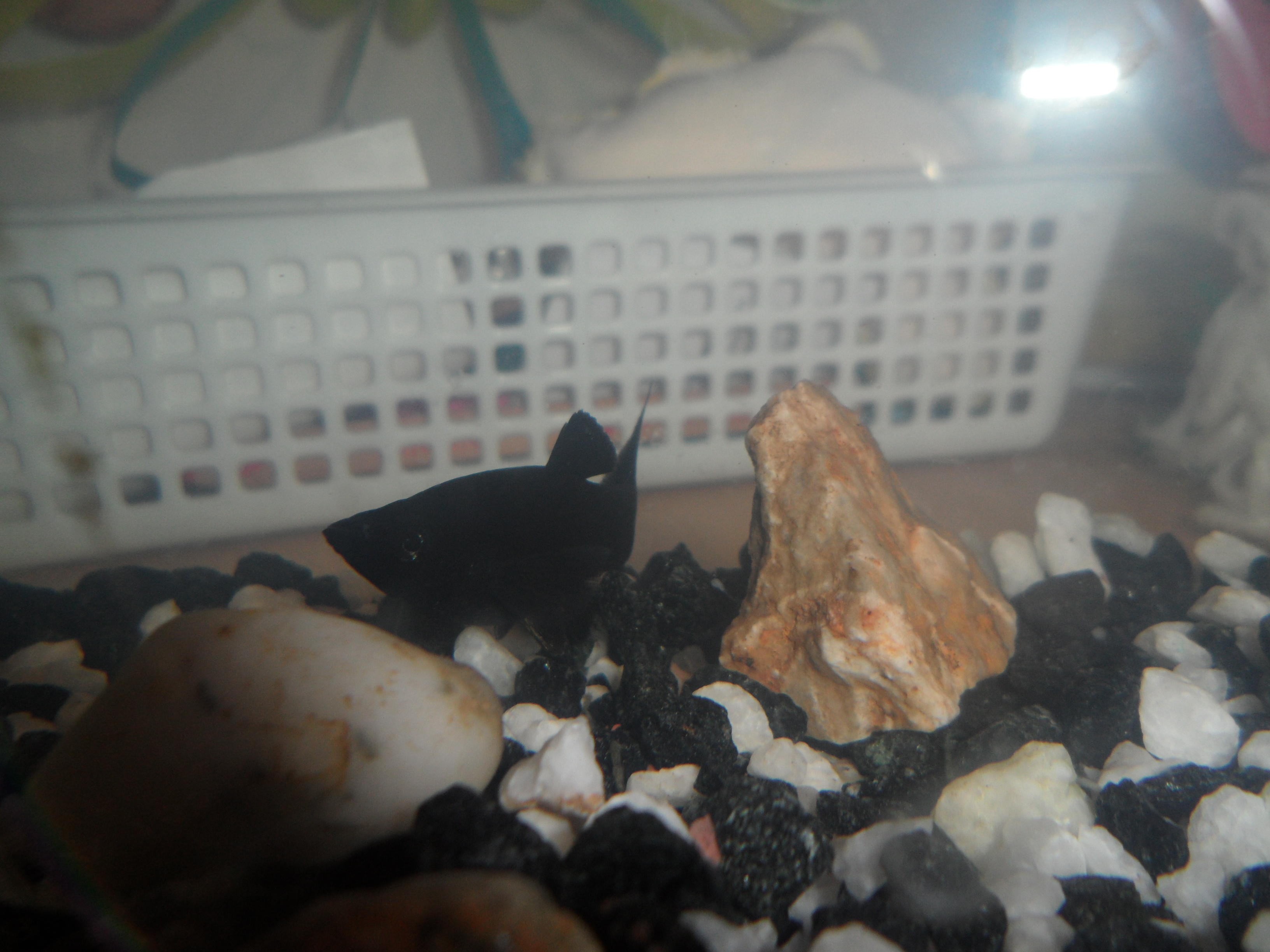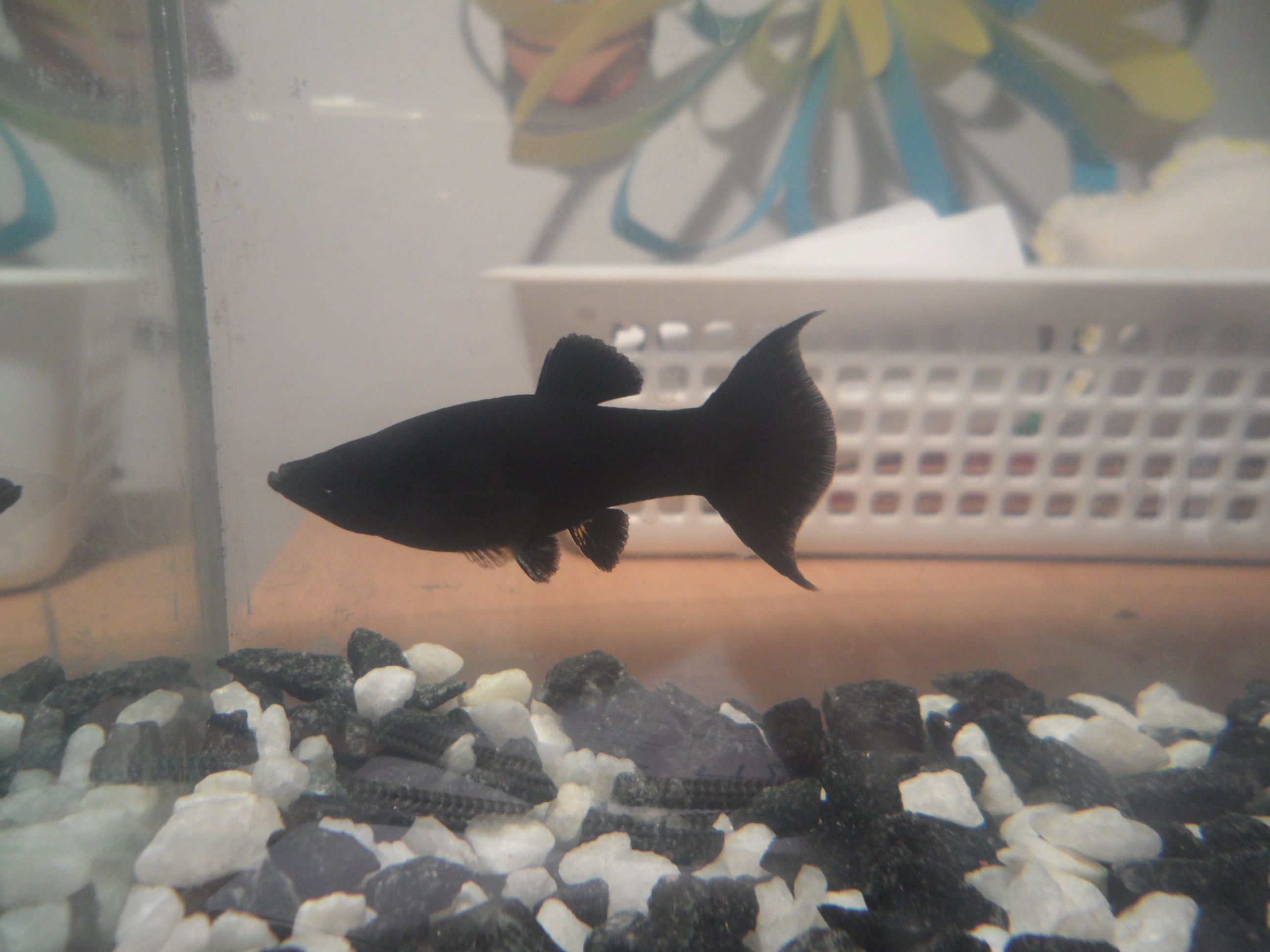 Včera jsem si všiml,že má jedna mečovka bílej flek na boku za hlavou a Black Molly ju tam oždibuje.Tož jsem mečovku vylovil a dal bokem,kdyby měla nějakou chorobu.Pak jsem si všiml,že ta černá mrcha nahání i ostatní mečovky,jiné ryby nechává napokoji.A snaží se je taky ožírat.Tak jsem oddělenou mečovku dal zpět do akvárka a na samotku poslal Mollynu.A co s ní ted?Pět týdnu byla v pohodě a zničeho nic jí škráblo.Je to nějakej cyklus,je možný,že jí vadí,že je tam sama svého druhu?