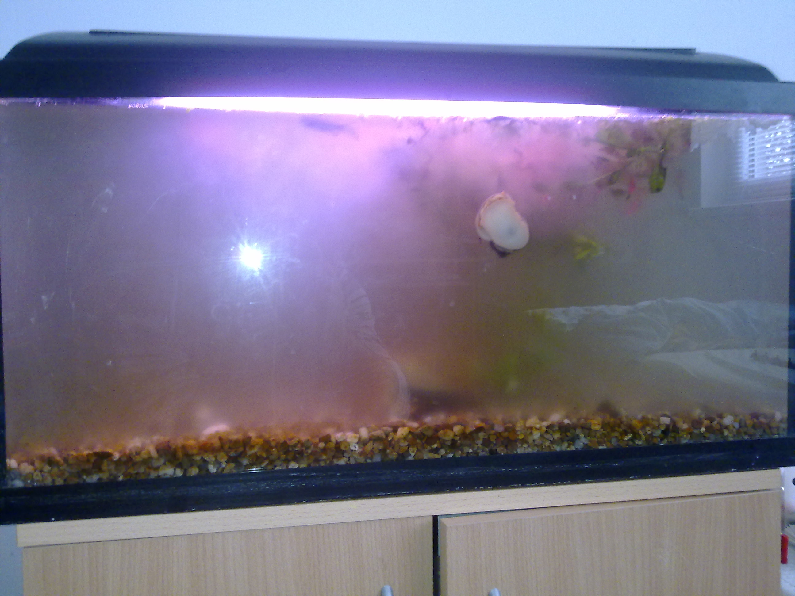 Zdravim, chcel by som sa poradit. Syn ma 60lit. akvarium ma tam rozne nenarocne rybky. Dnes rano sme zostali v skou ked sme uvideli stav vody. Vid foto. To sa udialo behom 24hod. a netusim co je pricinou. Tento stav nezvladli 2 ryby a zopar krevetiek. Voda sice nebola mesiac vymienana no dva dni dozadu bola krystalovo cira. Cakam na vase reakcie.