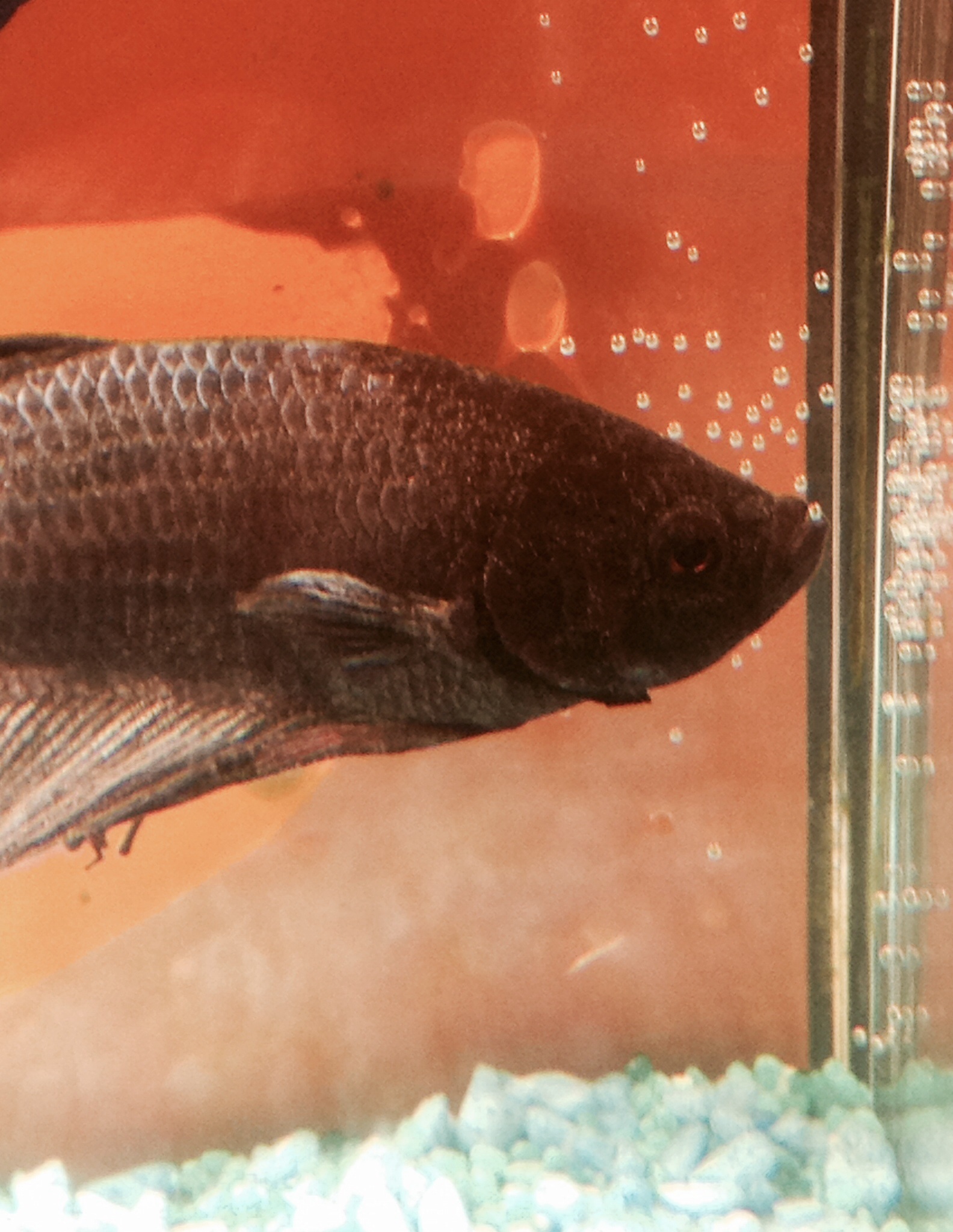 Poznámka k akváriu: podľa fotky to vyzerá, že nie je prikryté. Betty, aj iné labyrintky, by mali mať na akváriu krycie sklo, len na štrbinu odsunuté. Hltajú totiž pravidelne vzduch a ten by mal byť vlhký a rovnako teplý ako voda. Ďalšia funkcia skla je taká, že zabraňuje rybám vyskočiť z akvária.