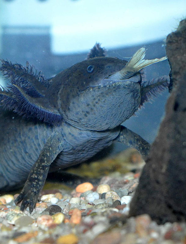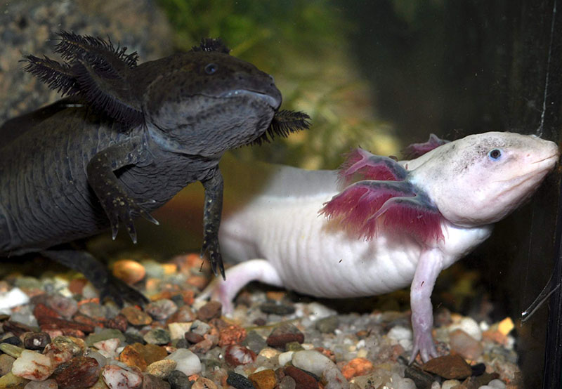 V akvárku by měli být axolotlové přibližně stejné velikosti, jestli je ten menší o dost drobnější, o…