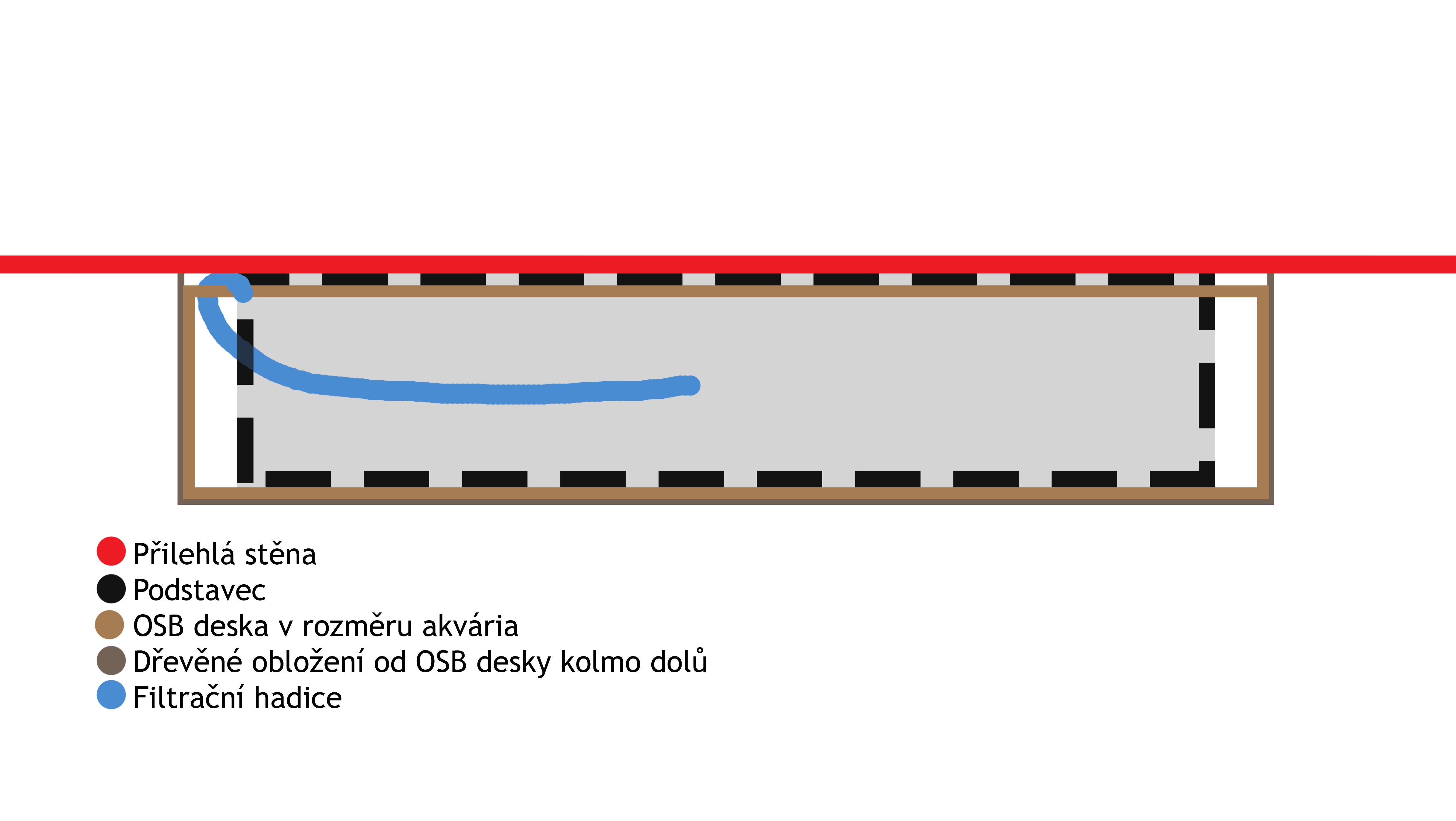 Napadlo mě tedy udělat konstrukci o něco menší než bude plocha akvária, na ni položit dřevenou OSB desku již o velikosti akvária a teprve na ni akvárium.