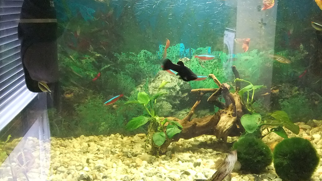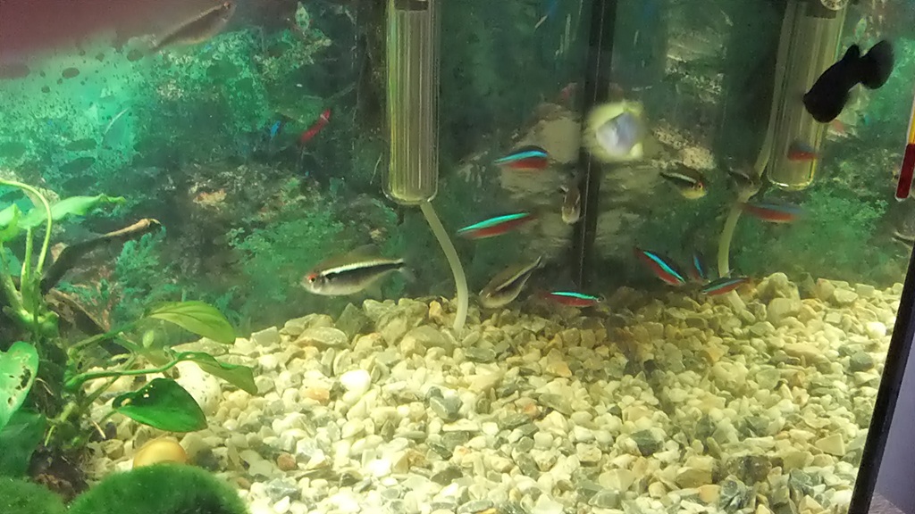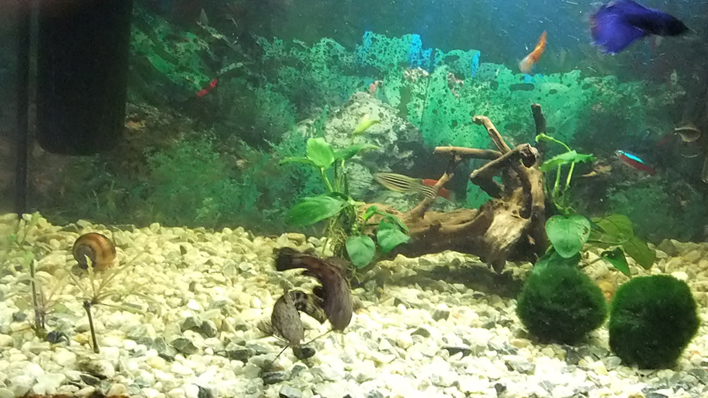 Pořiď hromadu rostlin, osázej alespoň 2/3 dna a pořiď kvalitní filtr, tento je nedostačující. Má mizivé množství filtrační hmoty. Rostliny jsou potřeba, protože ryby budou mít alespoň nějaký úkryt, ale hlavně se rostliny spolustarají o dobré podmínky v AQ.