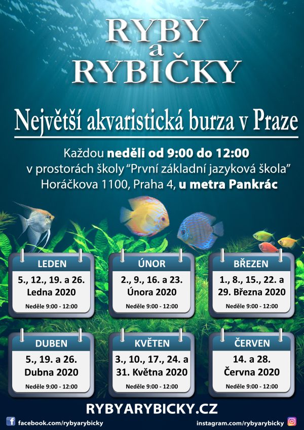 Termíny a informace o Největší výstavní a prodejní akvaristické burzy v Praze RYBY A RYBIČKY jsou na oficiálních stránkách https://rybyarybicky.cz/